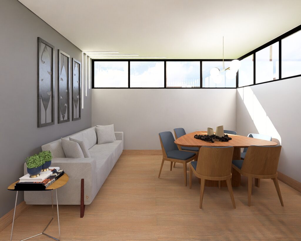Além disso, a escolha de materiais neutros e iluminação bem distribuída reforçou a sensação de continuidade entre os espaços. Consequentemente, o living se tornou o coração da casa, funcionando como ponto de encontro para momentos de descanso, conversas e celebrações.