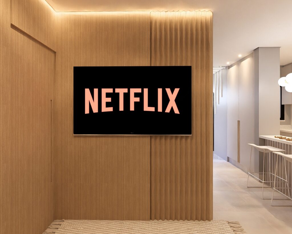 A madeira aparece como elemento acolhedor, trazendo sensação de aconchego. A iluminação indireta, por sua vez, cria atmosferas relaxantes e valoriza volumes e texturas. Além disso, a distribuição dos móveis foi pensada para garantir ergonomia e fluidez.