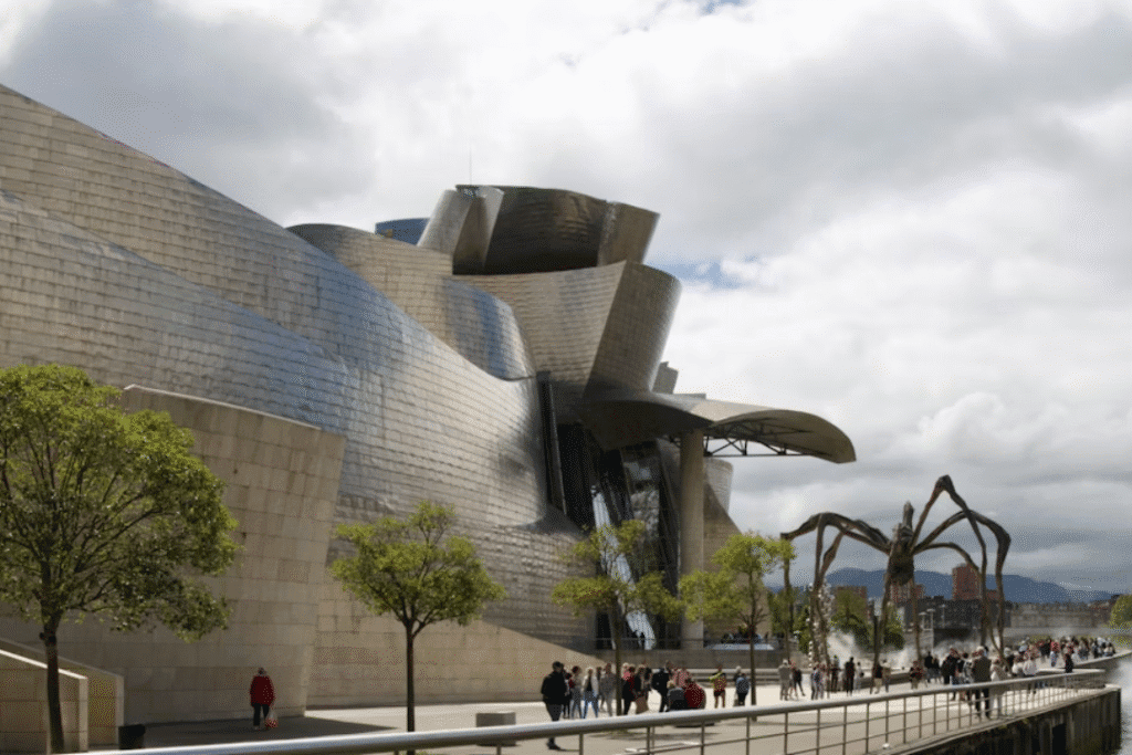Assinado por Frank Gehry, este edifício é, inevitavelmente, o ponto de partida para qualquer discussão sobre desconstrutivismo. Com suas curvas complexas revestidas de titânio, o museu provou que a arquitetura pode ser o motor de regeneração urbana. Além disso, a forma como a luz reflete no metal cria uma fachada dinâmica que se altera conforme as condições climáticas. Dessa maneira, Gehry transformou a percepção de volume e materialidade na arquitetura moderna.