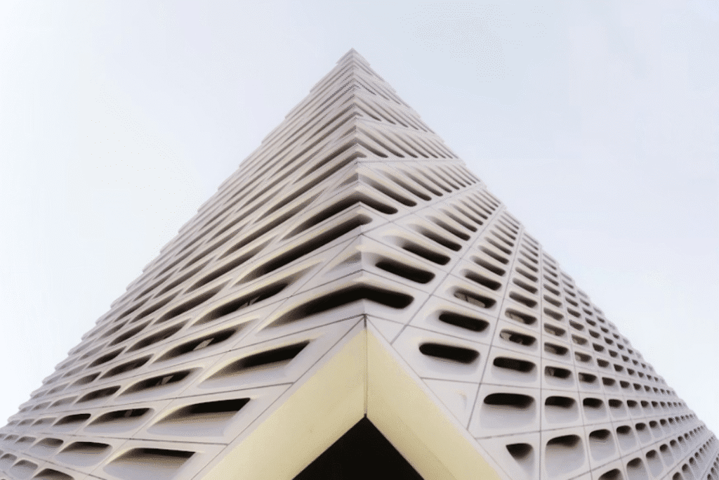 O escritório Diller Scofidio + Renfro propôs um conceito inovador chamado “veil and vault” (véu e abóbada). Diferentemente de museus fechados, o The Broad utiliza um envelope poroso de concreto que permite a entrada de luz natural filtrada. Assim sendo, o edifício atua como uma lanterna urbana, conectando o acervo artístico diretamente com a vida nas ruas de Los Angeles.