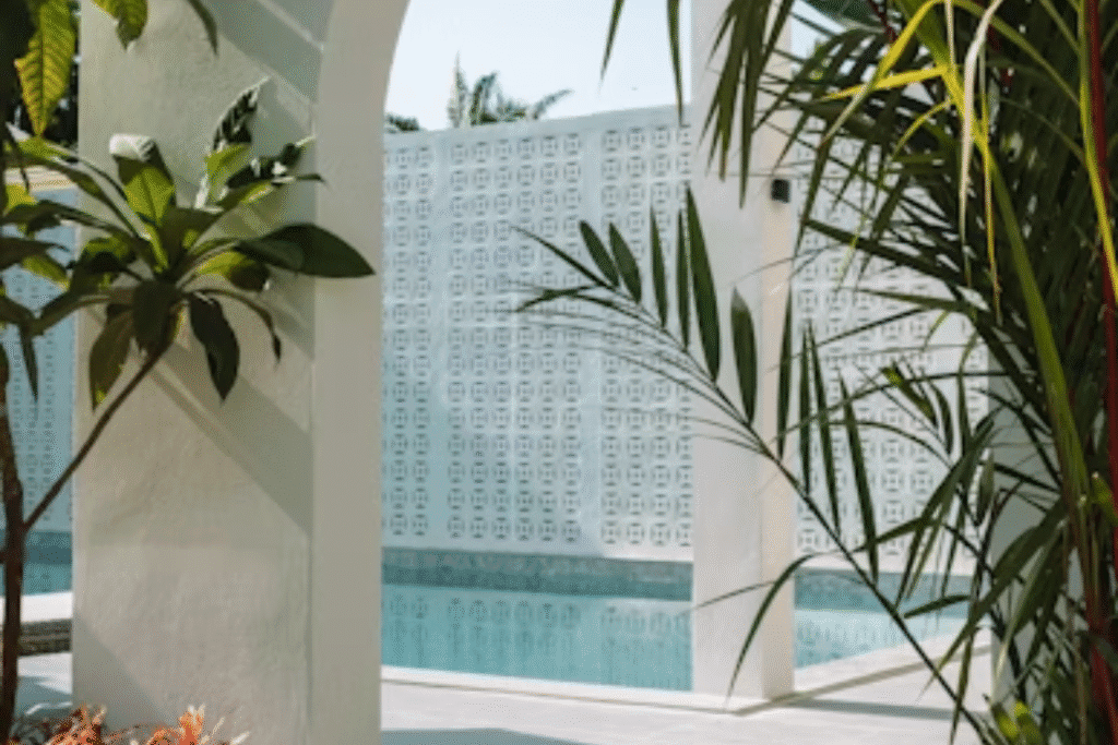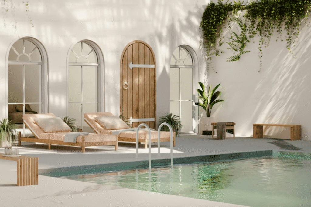 Embora falemos muito de beleza, a segurança é inegociável. Inclusive, grades de proteção com design minimalista, alarmes e dispositivos de sucção segura devem ser previstos ainda na fase de concepção. Consequentemente, evita-se o desgaste precoce dos materiais e garante-se que a área externa seja um local de paz para crianças e animais de estimação.